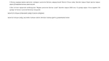 НУТГИЙН ӨӨРӨӨ УДИРДАХ БАЙГУУЛЛАГЫН 2025 ОНЫ ЖИЛИЙН ЭЦСИЙН МЭДЭЭНИЙ НЭГТГЭЛ