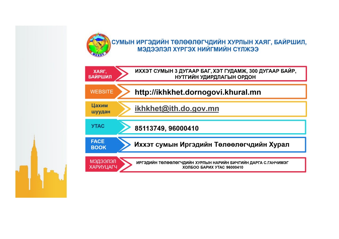 ДОРНОГОВЬ АЙМГИЙН ИХХЭТ СУМЫН ИРГЭДИЙН ТӨЛӨӨЛӨГЧДИЙН ХУРАЛ