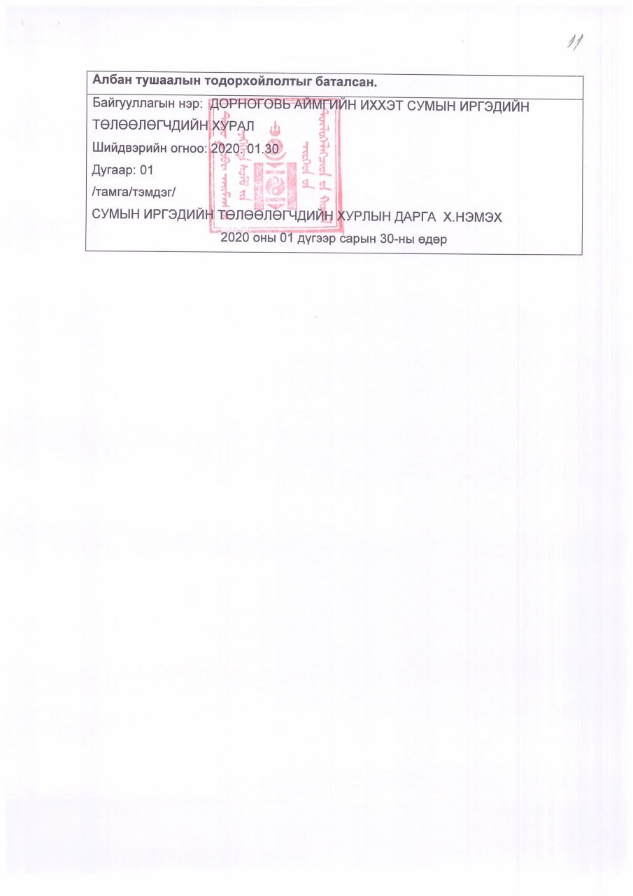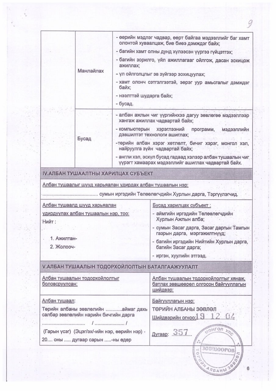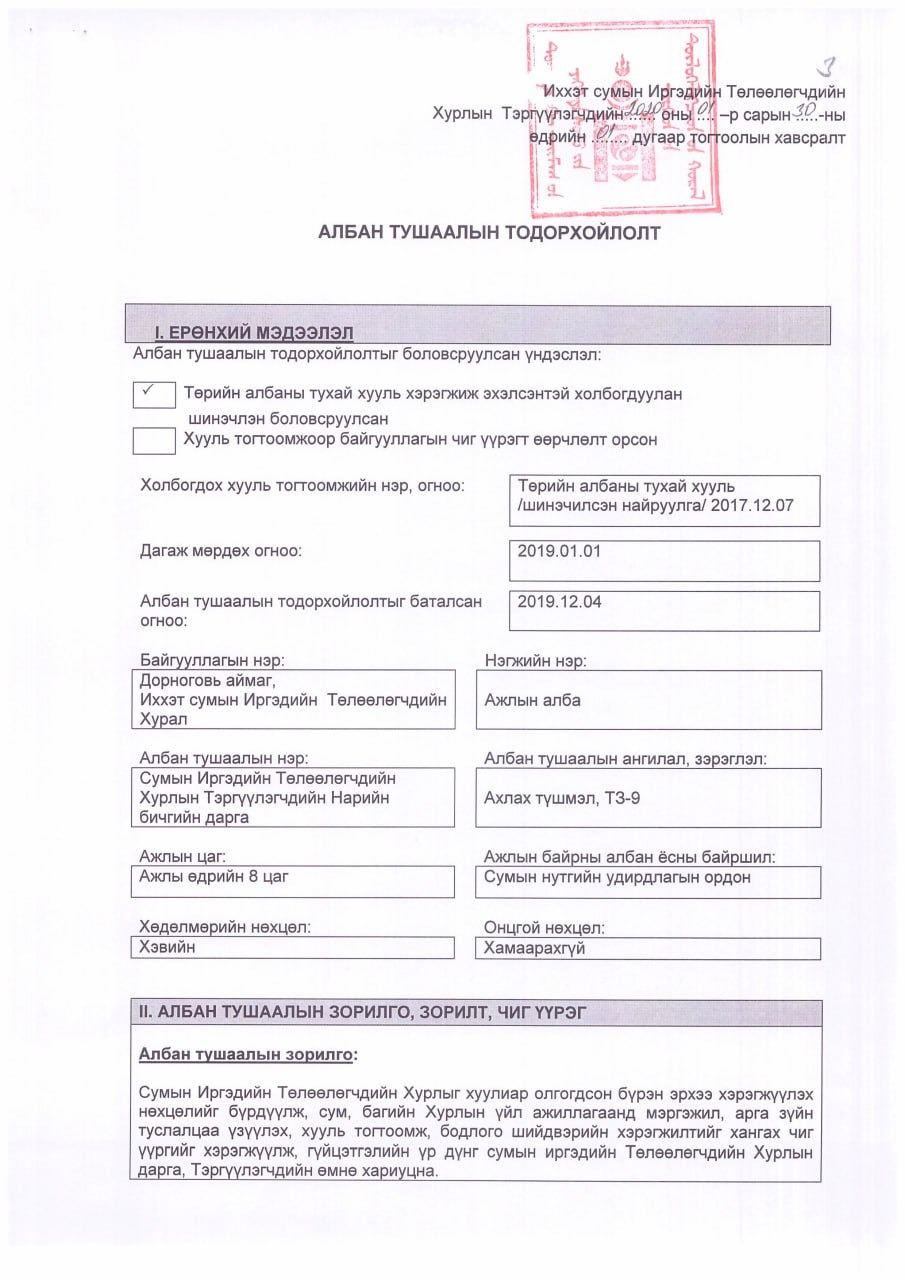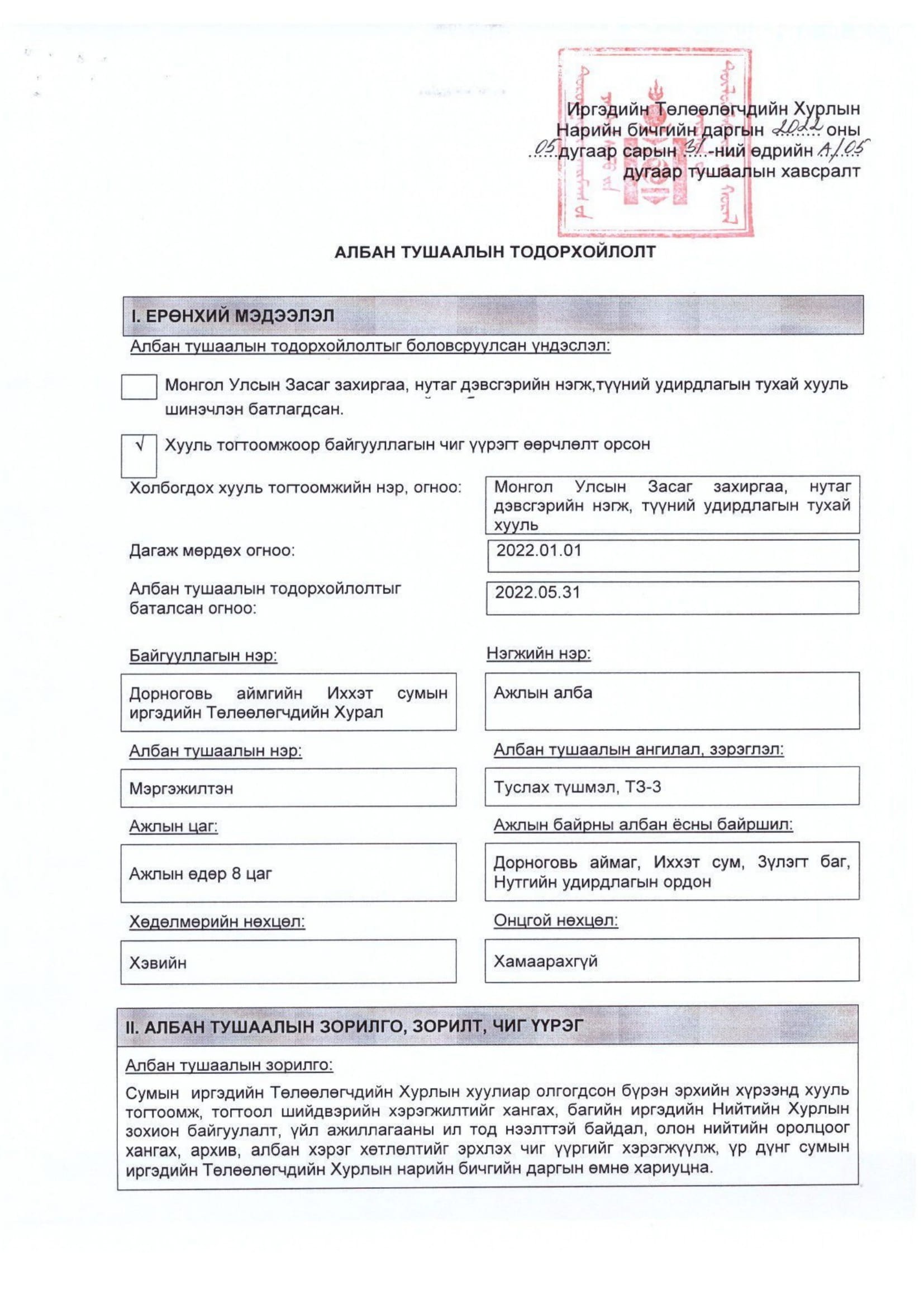 АЛБАН ТУШААЛЫН ТОДОРХОЙЛОЛТ