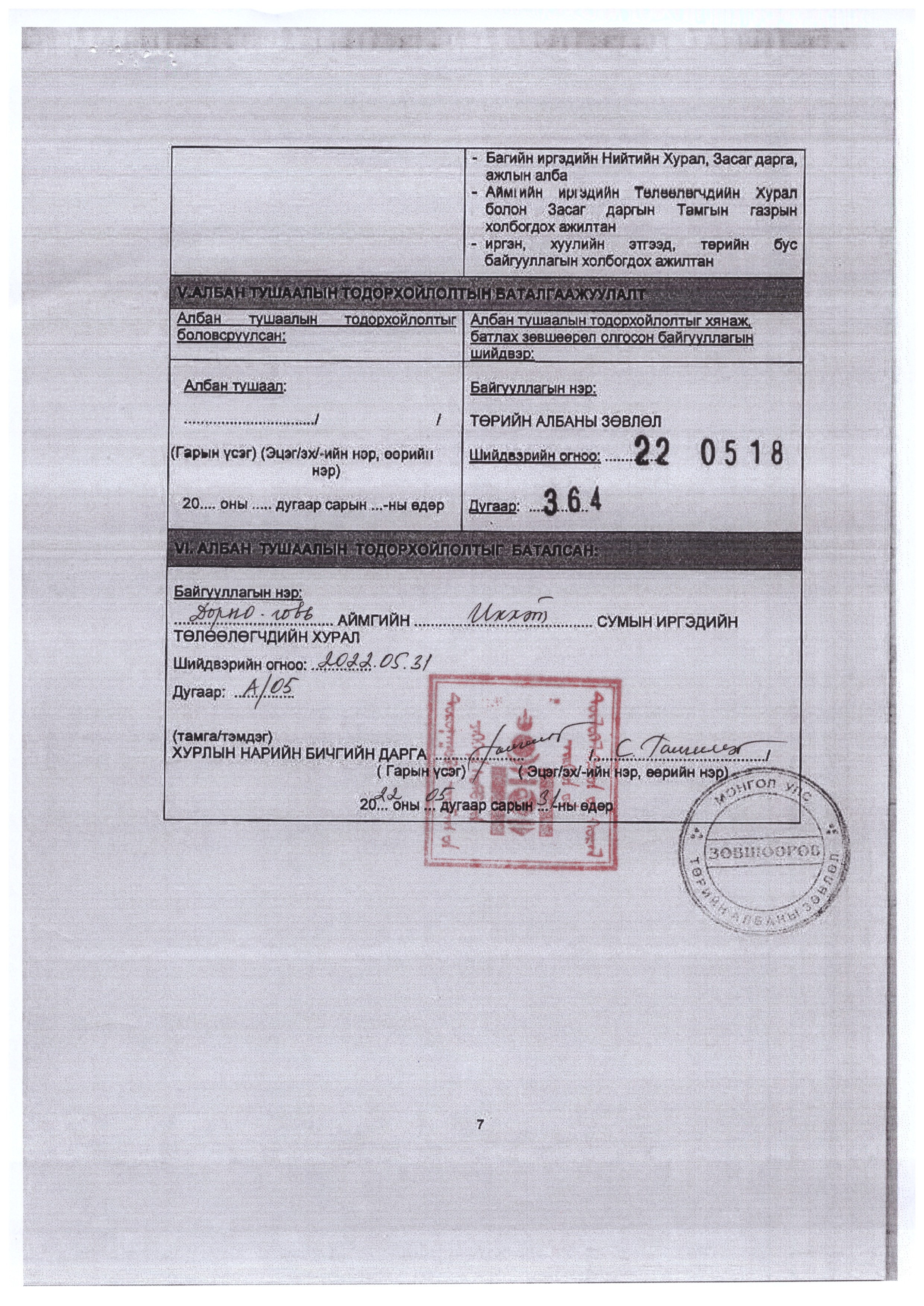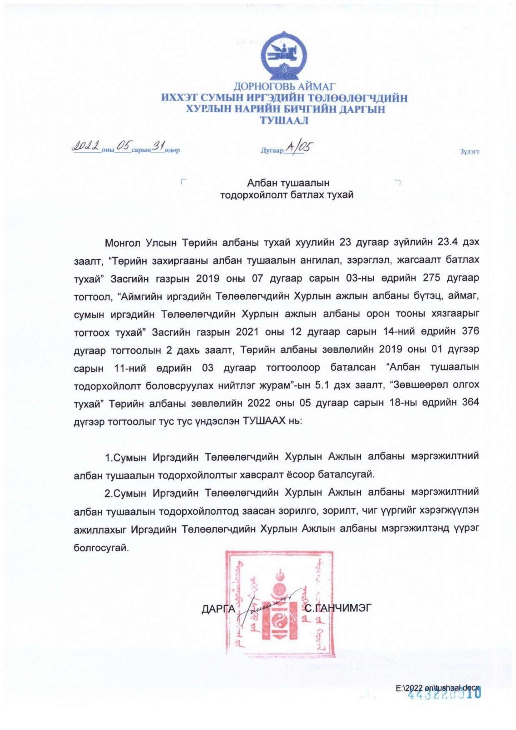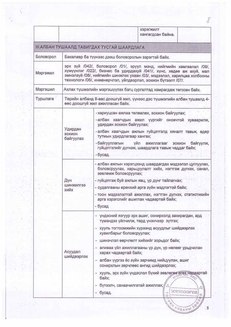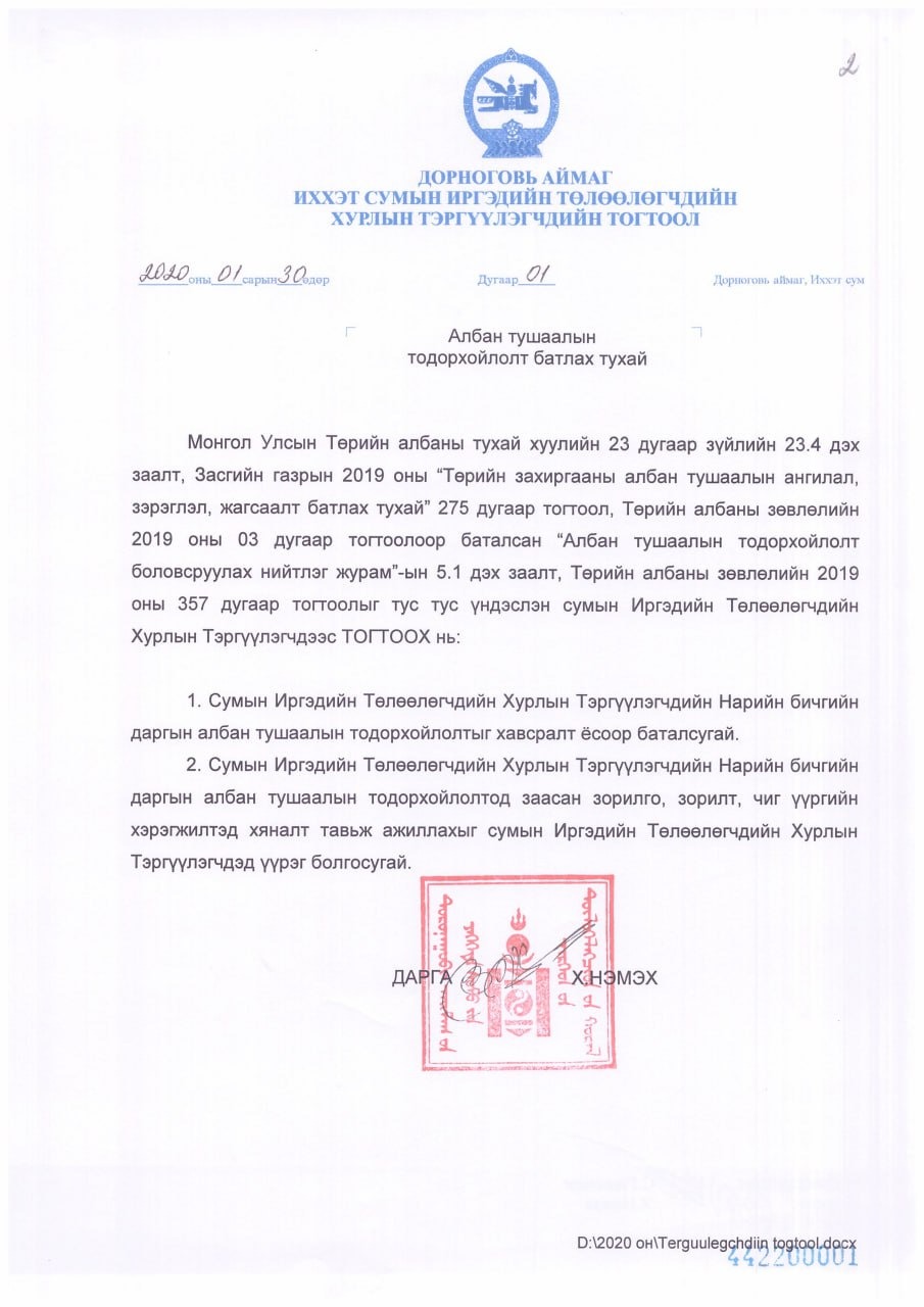 АЛБАН ТУШААЛЫН ТОДОРХОЙЛОЛТ