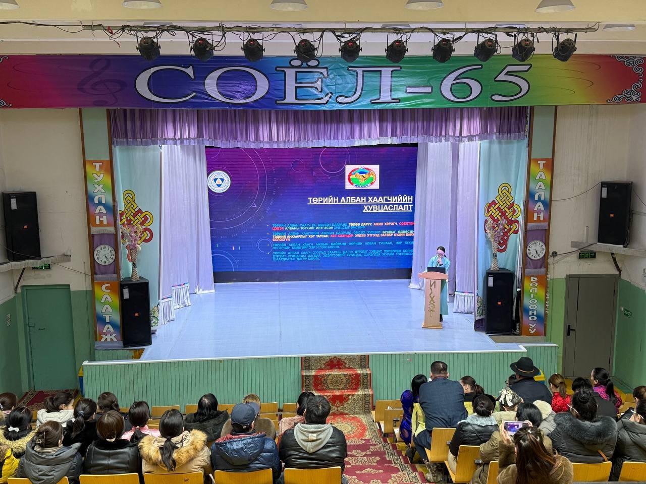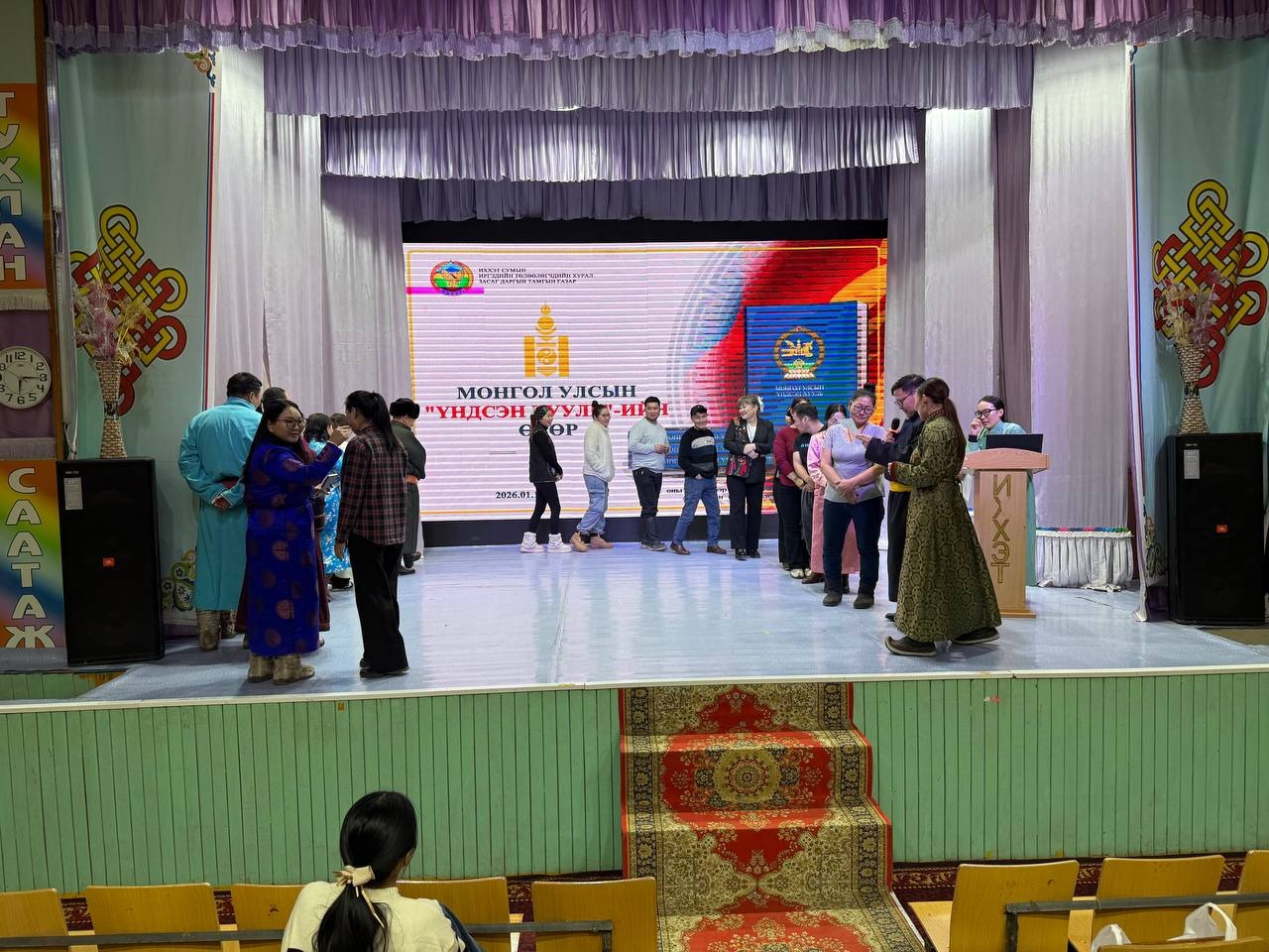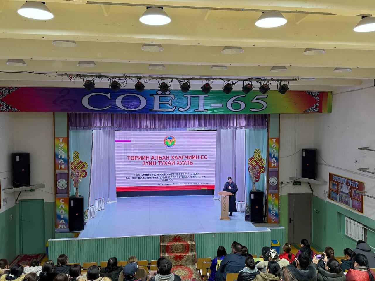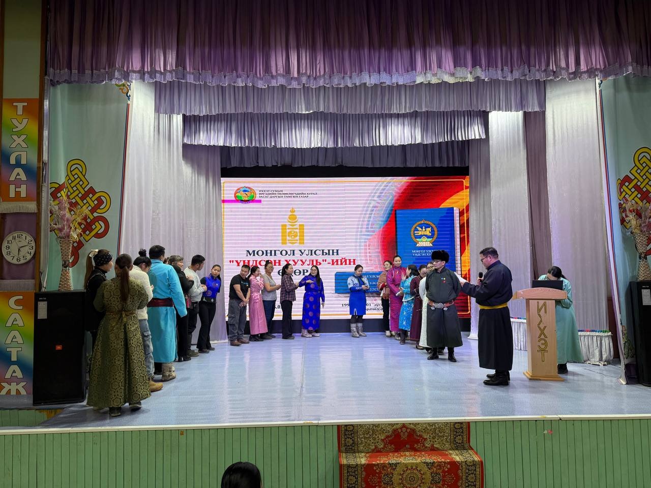 Өдөрлөгийн арга хэмжээн дээр “Үндсэн хуулийн танилцуулга, ач холбогдол” сэдвээр сумын Засаг даргын Тамгын газрын Хууль, эрх зүйн мэргэжилтэн Б.Мөнхсаруул, Төрийн албаны ёс зүйн тухай хуулиар сумын Засаг даргын Тамгын газрын Ёс зүйн дэд хорооны дарга А.Даваадорж, Төрийн албаны үйл ажиллагаанд тавих ерөнхий шаардлага, стандартын талаар Хууль, эрх зүйн мэргэжилтэн Б.Мөнхсаруул нар тус тус мэдээлэл танилцууллаа.