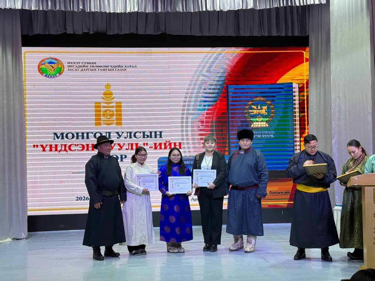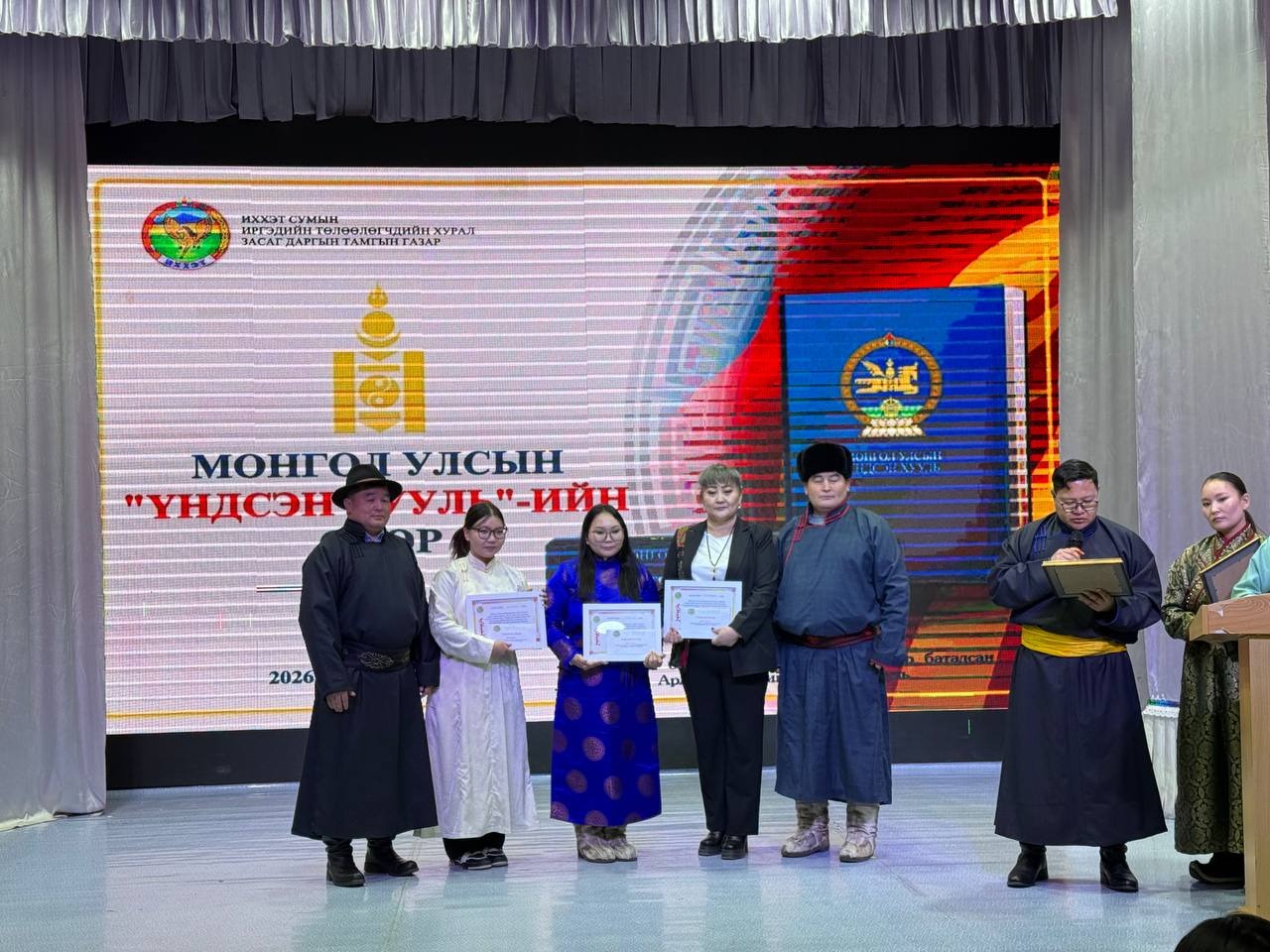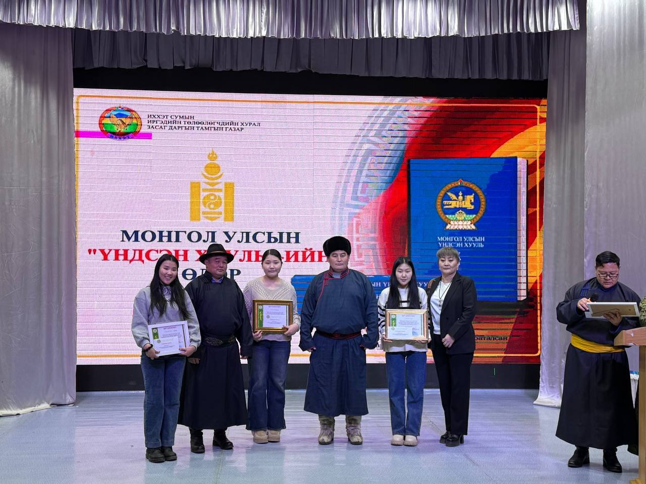 Өдөрлөгийн арга хэмжээний үеэр Монгол Улсын үндсэн хуулийн өдрийг угтан ЕБС-ийн дунд, ахлах ангийнханы дунд зарласан “Хүний эрх-Эрх чөлөө” сэдэвт “Эссэ” бичлэгийн уралдаан, төрийн албан хаагчид болон иргэдийн дунд зарласан Үндсэн хуулиа үндэсний бичгээрээ бичих “Үндэсний бичгийн сайхан бичигтэн” уралдаанд шалгарсан иргэдэд шагналыг гардууллаа.