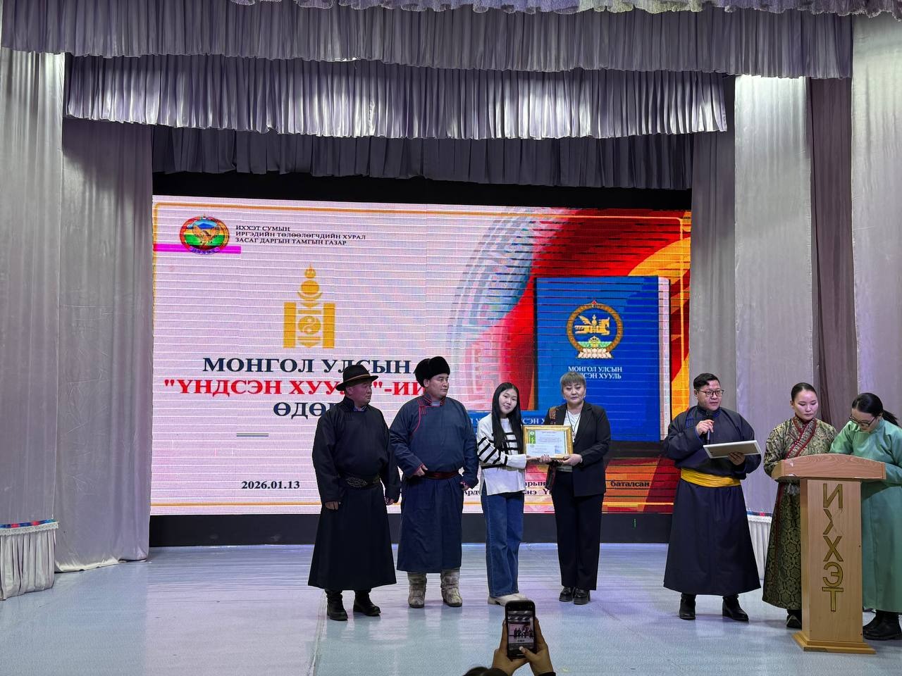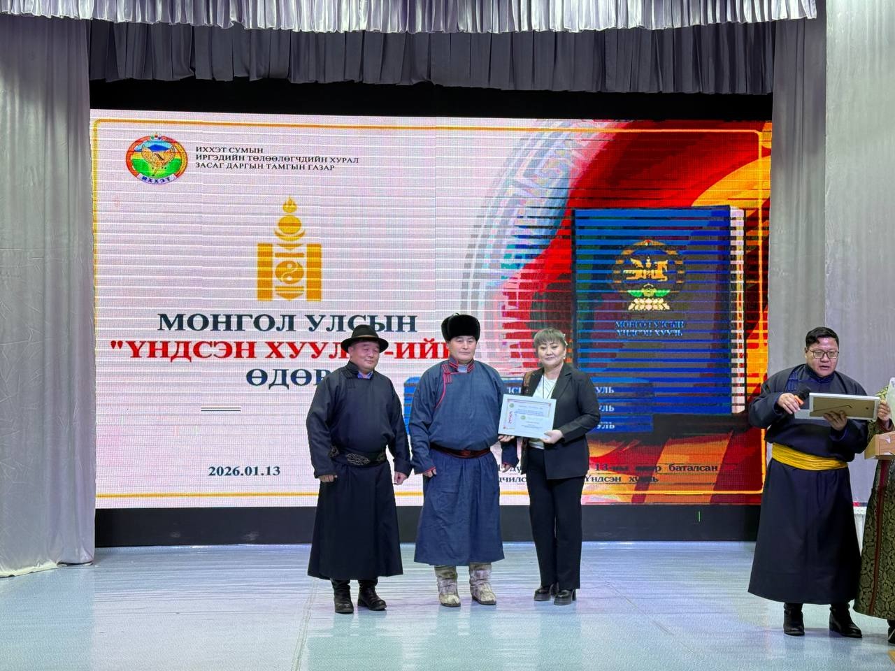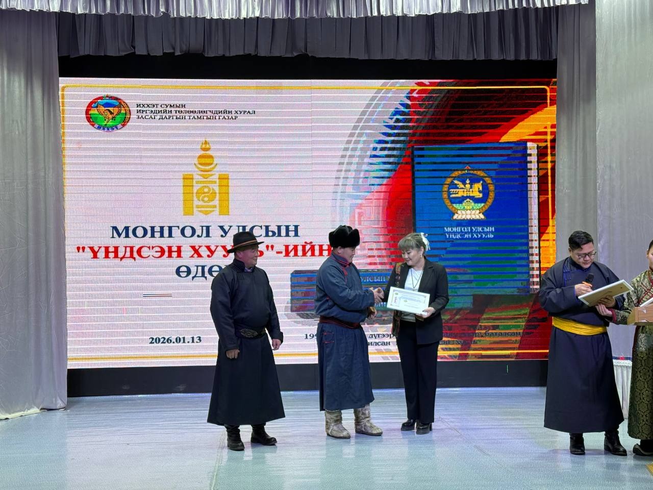 Энэ өдөр 15.00 цагт Соёлын төвд “Монгол Улсын Үндсэн хуулийн өдөр”, ардчилсэн шинэ Үндсэн хууль батлагдсаны 34 жилийн ойг тэмдэглэх өдөрлөгийн арга хэмжээг зохион байгууллаа.